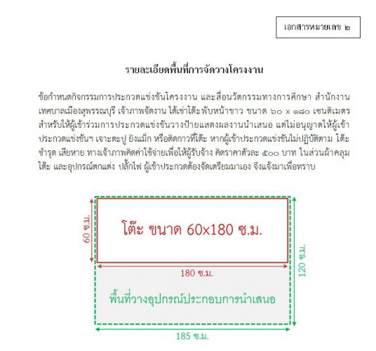 แผนผังและขนาดพื้นในการแข่งขันโครงงาน/สื่อนวัตกรรมทางการศึกษา